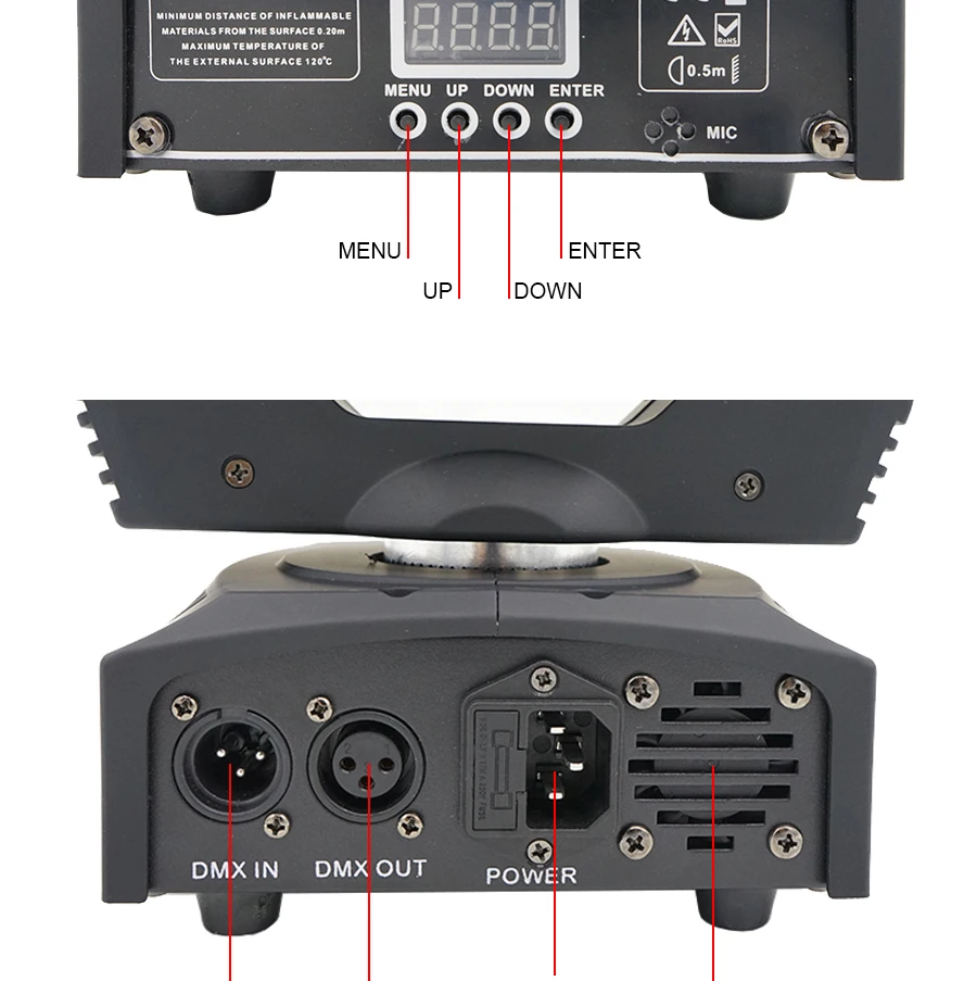 Напряжение: AC90-220V / 50-60 ГцМощность: 30 Вт/50 Вт/80 ВтЛампа: 10 Вт/30 Вт/60 ВтРежимы работы: управление DMX, самоходный режим, Голосовой режим, DMX512Канал: 9 / 11CHУгол горизонтального вращения: 540 °,Вертикальный угол: 270 °Размер: 160*130*280 ммРазмер упаковки: 290*225*260 ммВес нетто: 3,5 кгВес брутто: 4,5 кгМодель колеса gobo 8, цветное колесо 8 цветов, система движущейся головки XY axis гибкая.Демонстрация товара