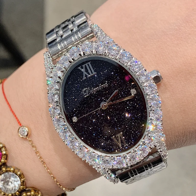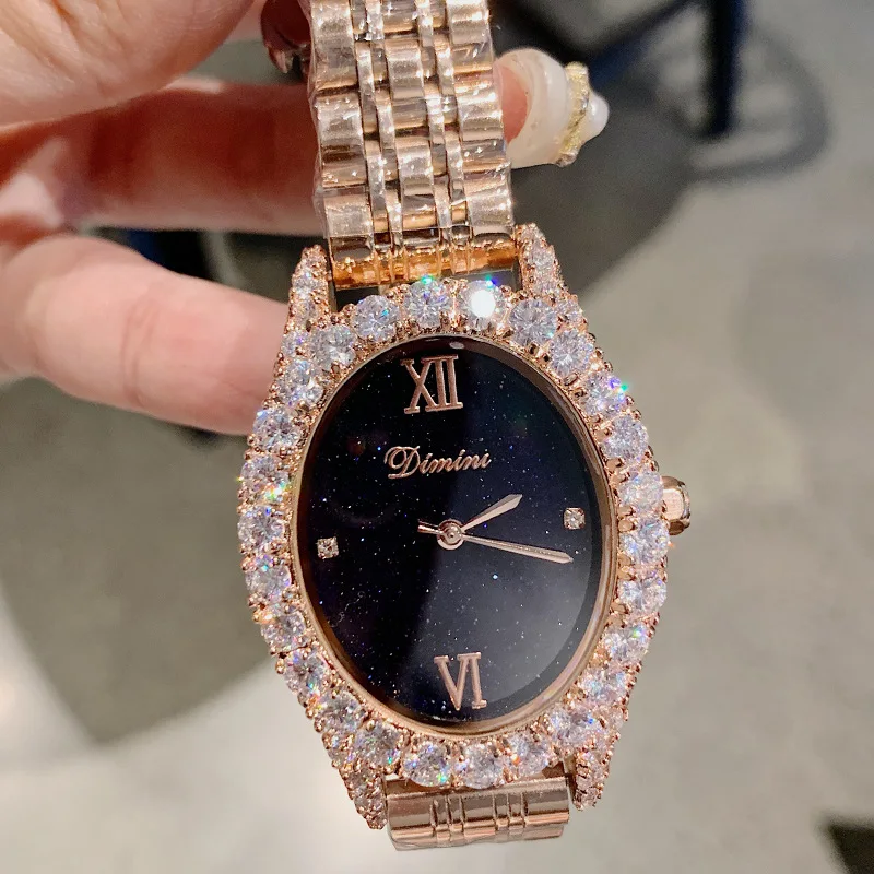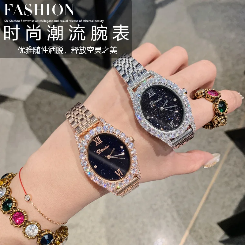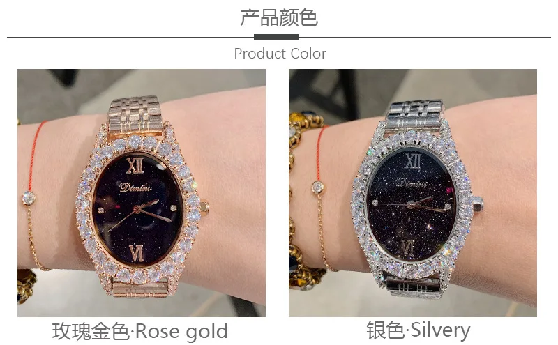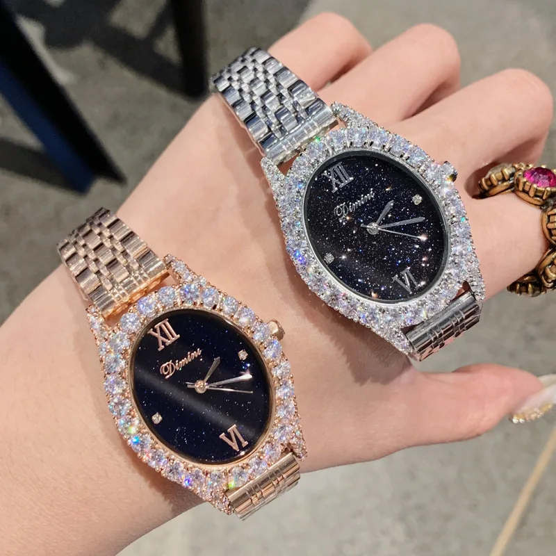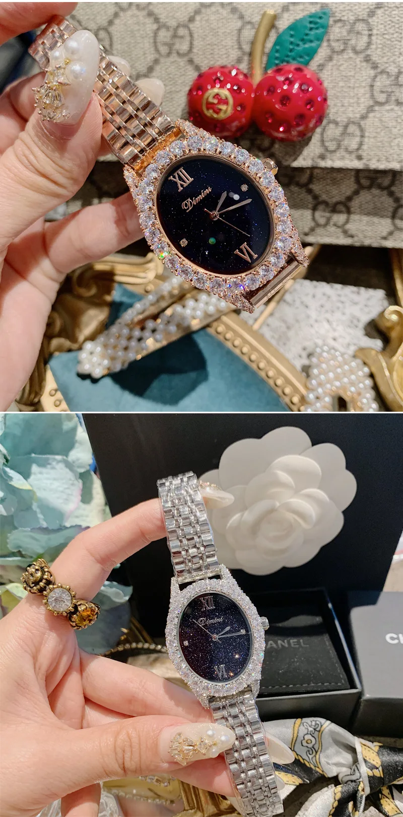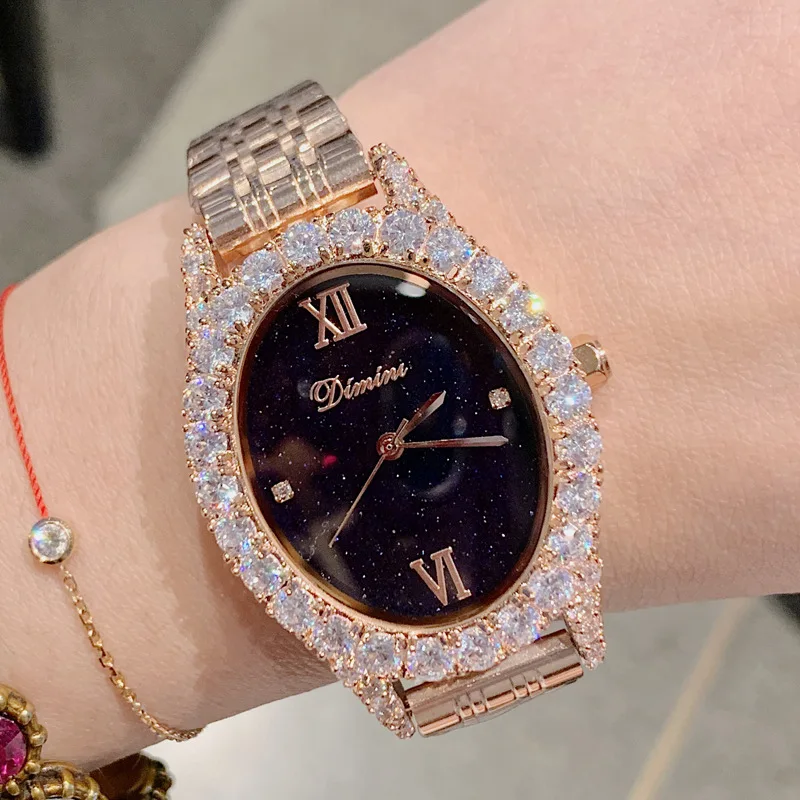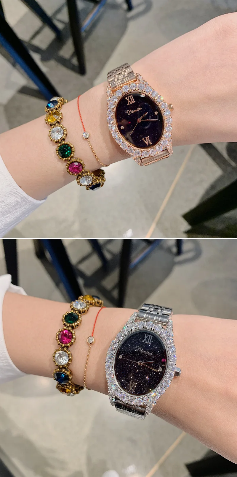 Часы женские кварцевые из нержавеющей стали, овальные наручные, с бриллиантами, розовое золото, для девушек