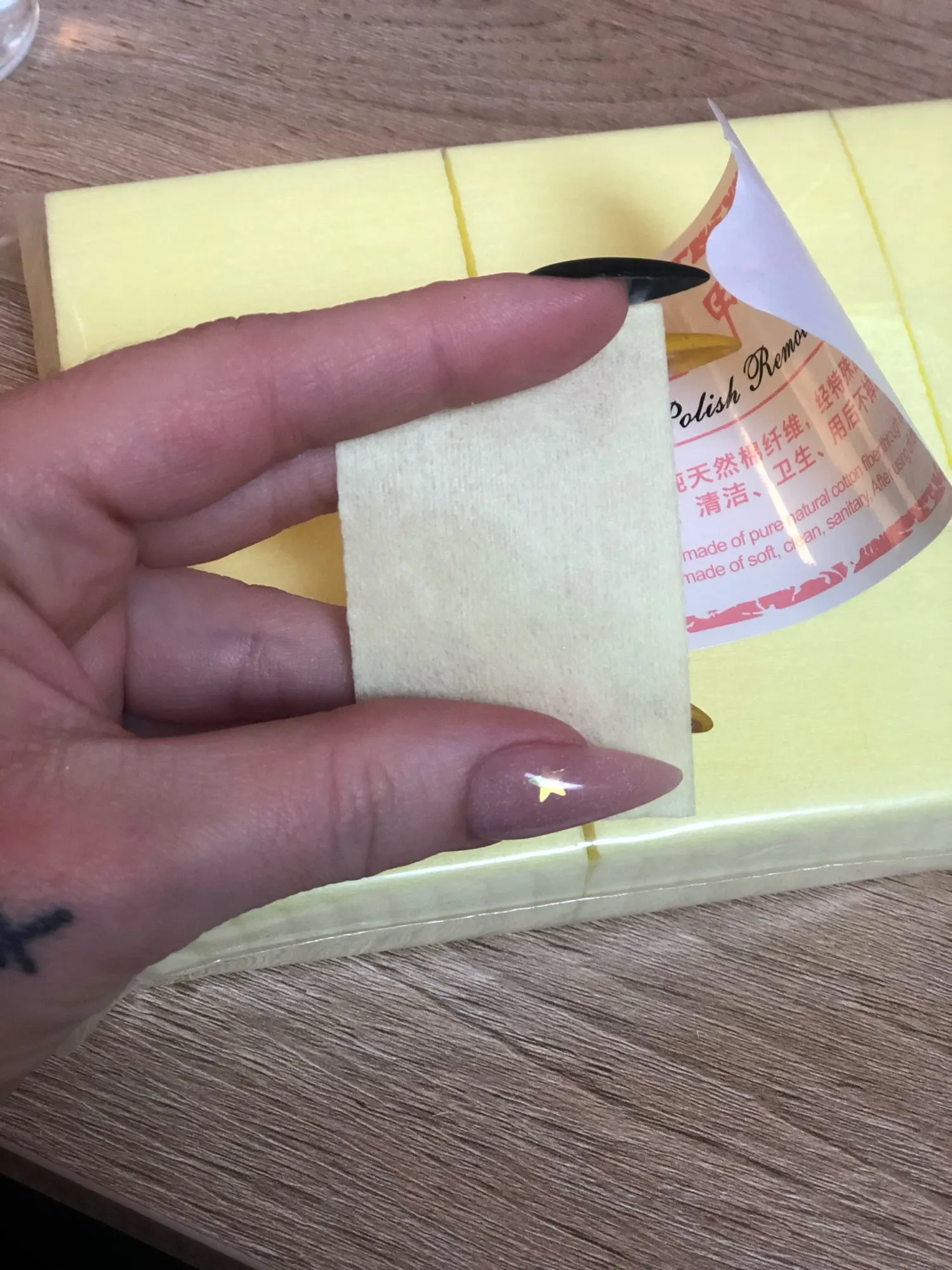 Отлично работает, особенно в качестве спиртового тампона, когда вы хотите очистить ноготь после нанесения геля, чтобы удалить липкий слой, лучше, чем с помощью хлопковых шариков, он не оставляет хлопковых ниток сзади! Также идеально подходит для чистки палочек для ногтей ....