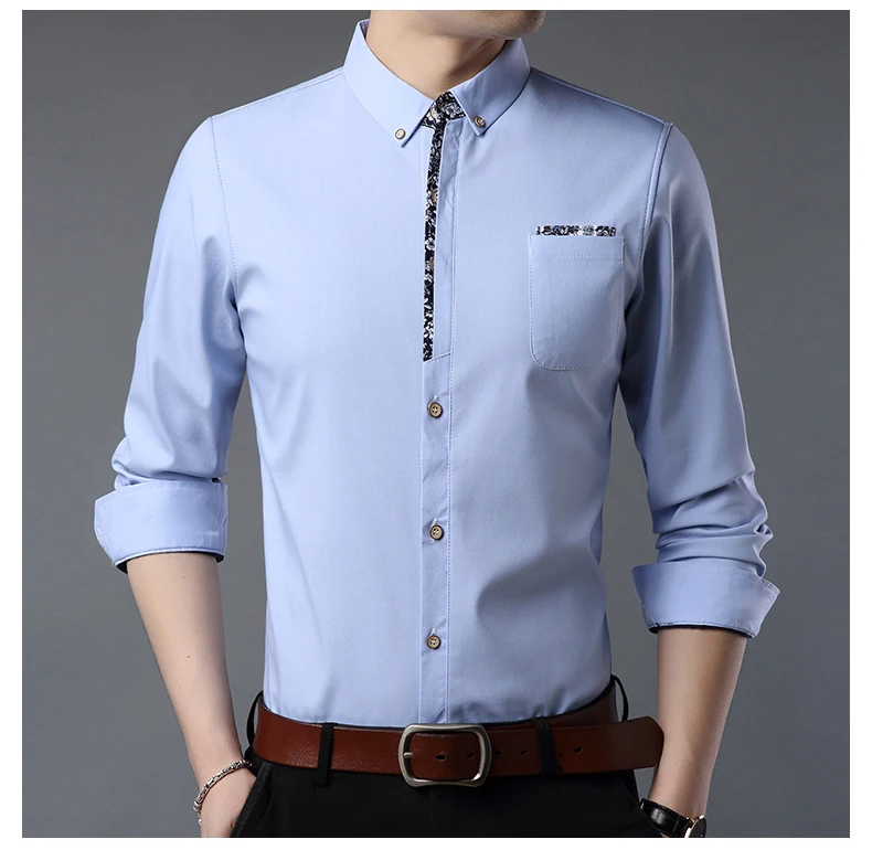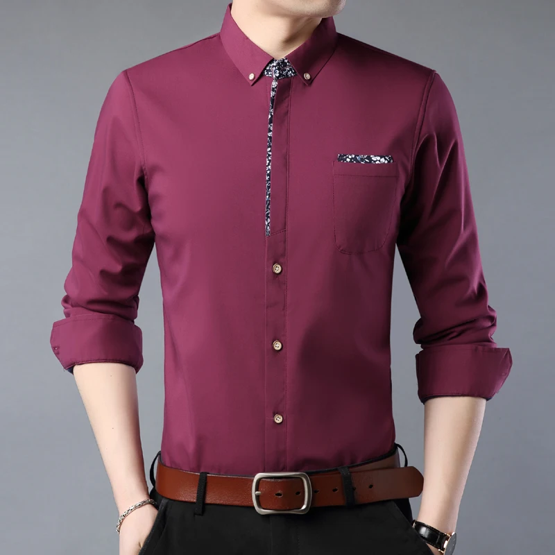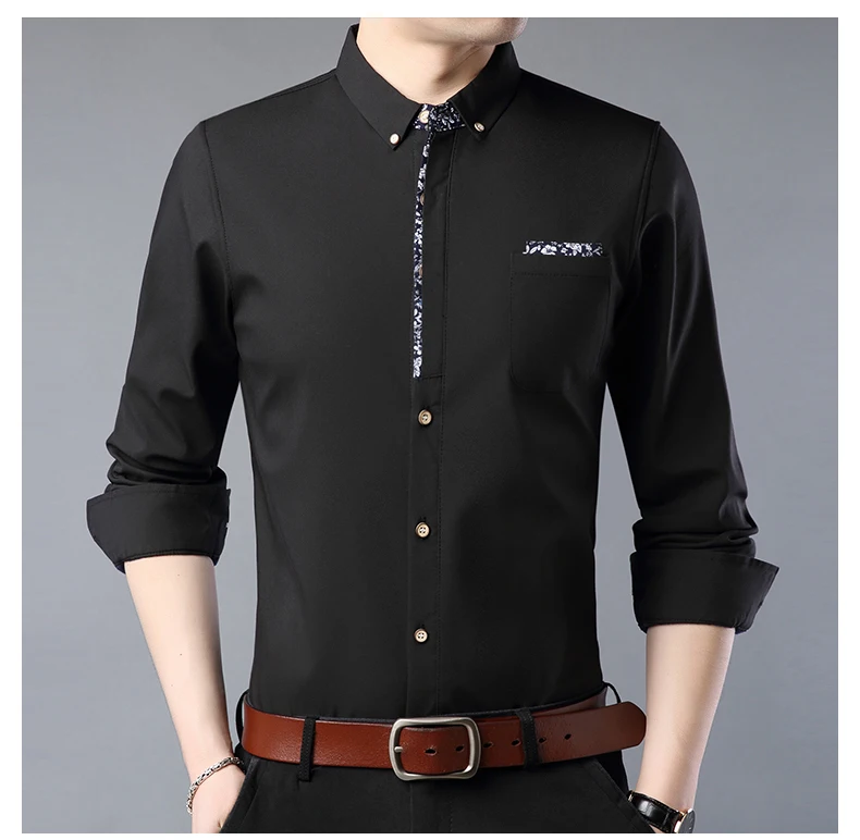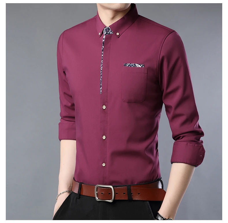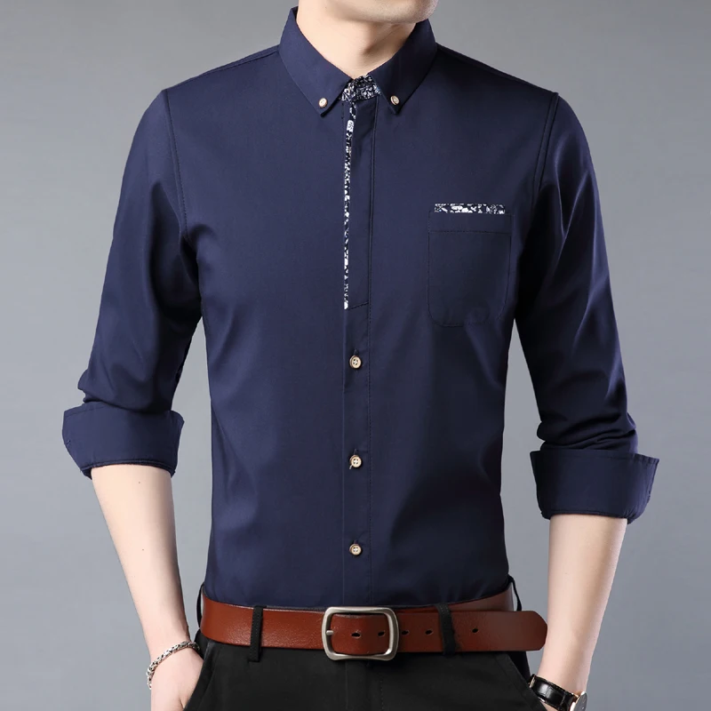 Мужская рубашка MIACAWOR, приталенная рубашка с длинным рукавом, в ...