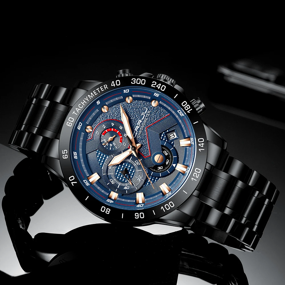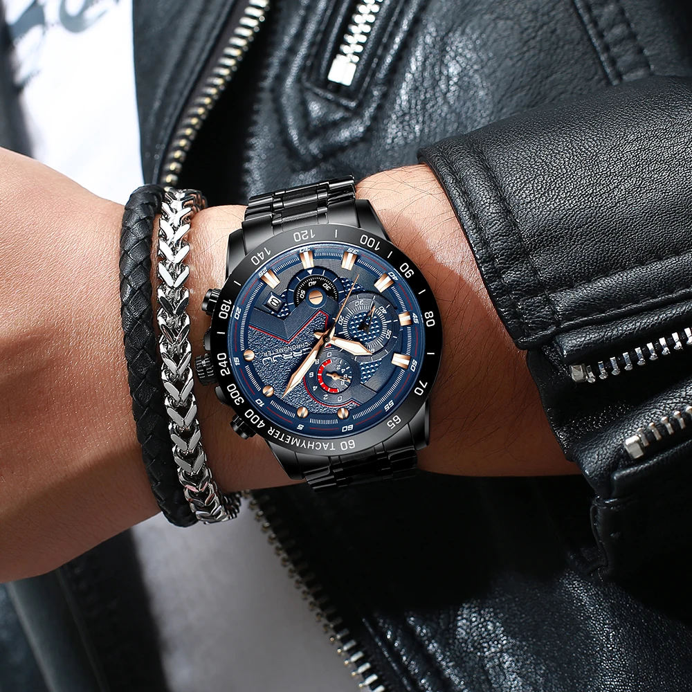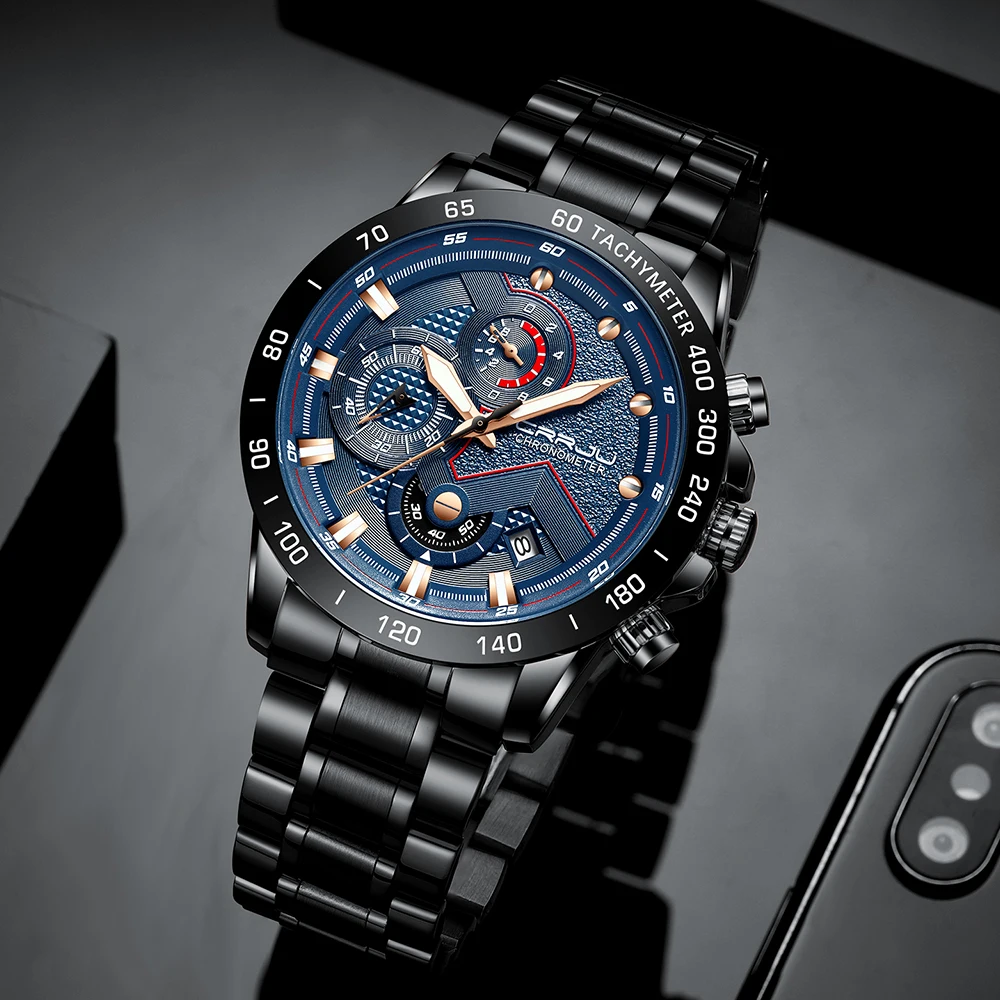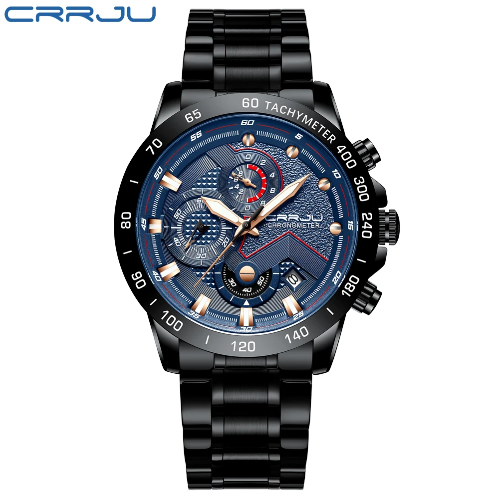 Мужские кварцевые часы CRRJU, спортивные часы в стиле милитари, из нержавеющей стали, с хронографом, 2019