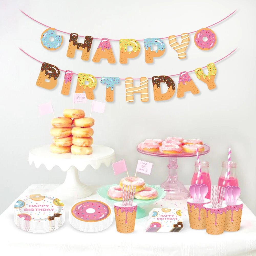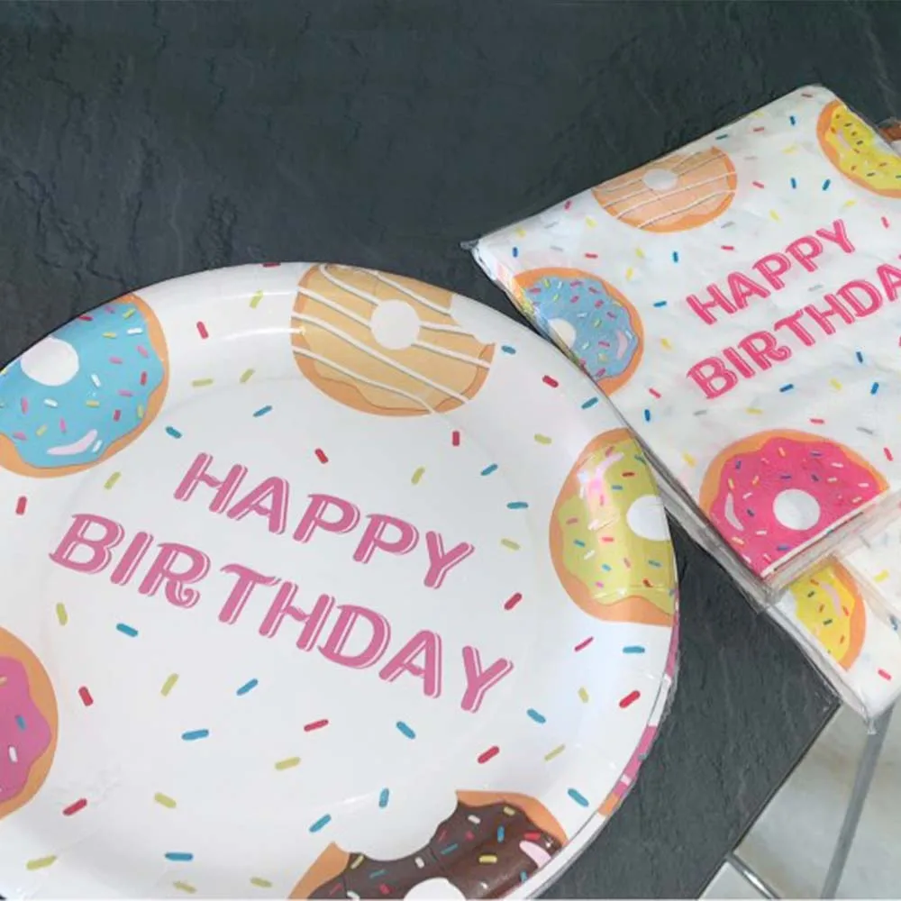 Пончик украшения для тематических вечеринок бумажный стаканчик салфетка торт Топпер тарелки одноразовые наборы посуды детские товары для дня рождения