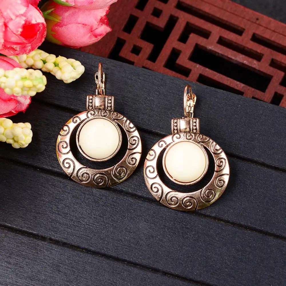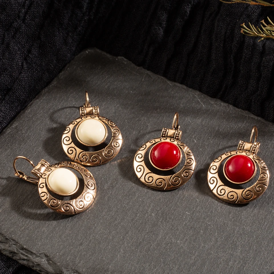Женские серьги-подвески, золотистые круглые с красным и белым камнем, 2019