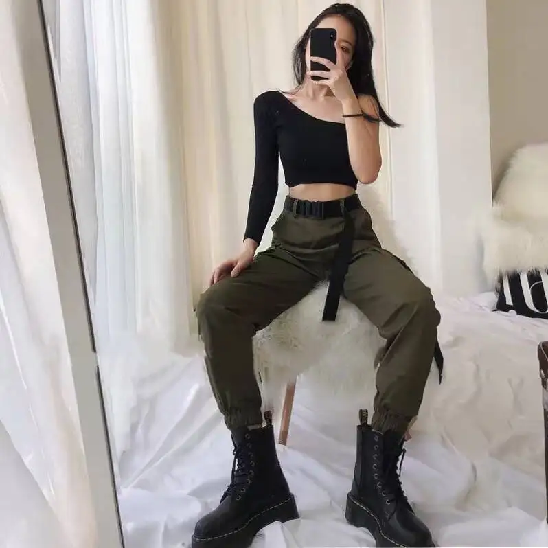 Брюки-карго женские с завышенной талией, уличная одежда, модные повседневные джоггеры, свободные штаны
