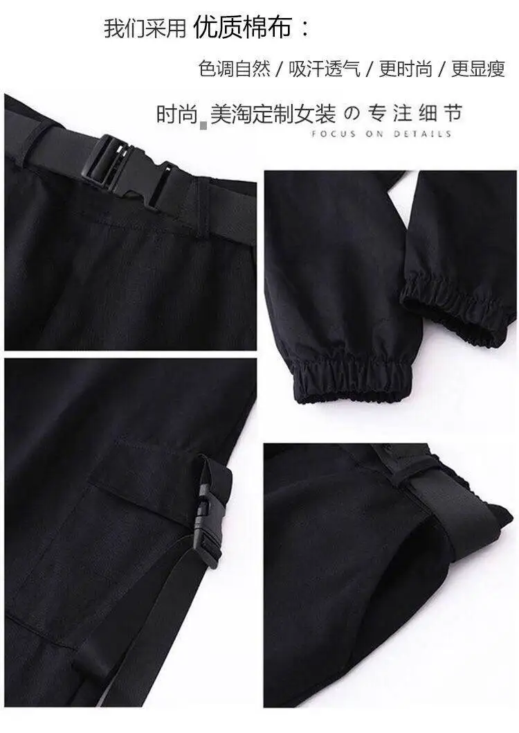 Брюки женские с лентами 2021, черные повседневные мужские Джоггеры ...