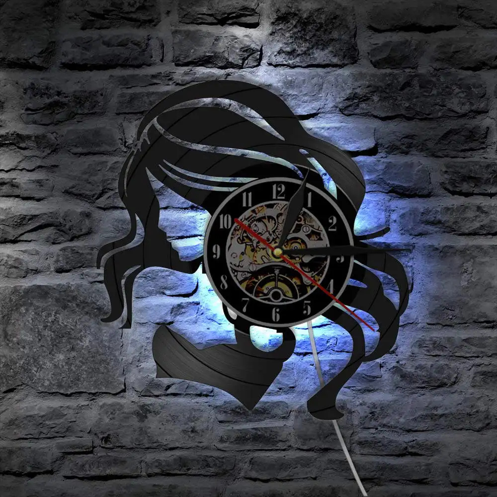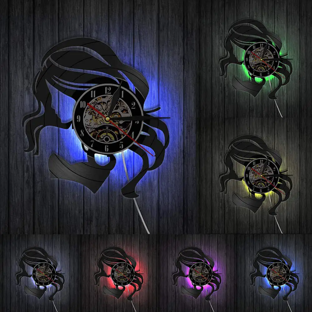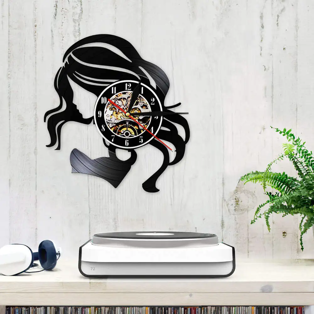Часы с виниловой пластинкой, тихие кварцевые настенные часы в стиле ретро, для ухода за волосами