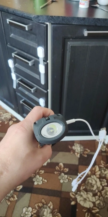 Очень практичный. Магниты эффективны. Основная Лампа дает мощный свет. Отличный кабель для зарядки micro_usb. Советуем.