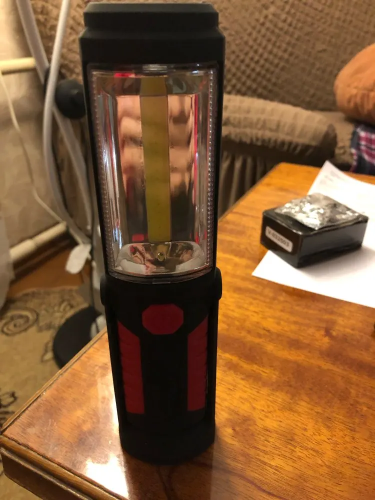 Посылка пришла быстро. Фонарь светит для своих денег хорошо, но нижняя подставка на магните очень хлюпкая думаю долго не прослужит.