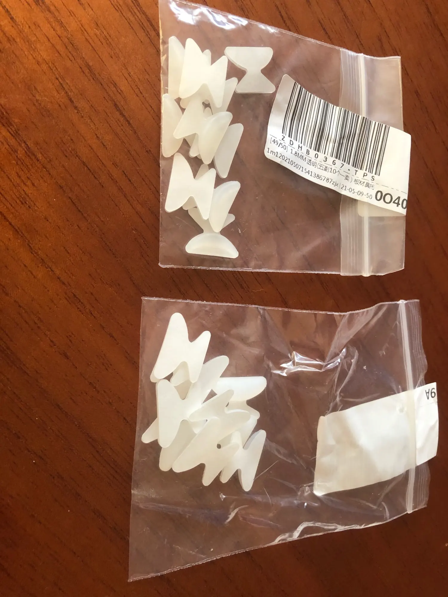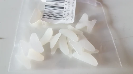 заказ приехал за месяц ,в упаковке крошечный пакетик с силиконовыми накладками. но мне положили всегго 9 штук вместо 10. мелочь ,а не особо поиятно .клеятся на очки хорошо ,но думала будут потоньше и менее заметные . больше подойдут для тостой пластиковой оправы . оставили неоднозначное впечатление