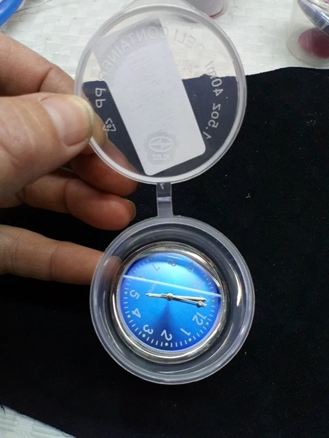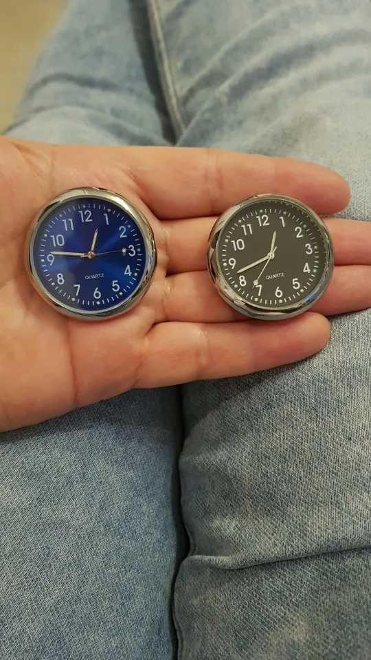 такие хорошенькие часики! синие, под цвет моего автомобиля, немного отстали в дороге, подвела время, посмотрим, как будет дальше. отколупывать их будет затруднительно - чтобы подвести, или поменять батарейку, крепятся на двусторонний скотч