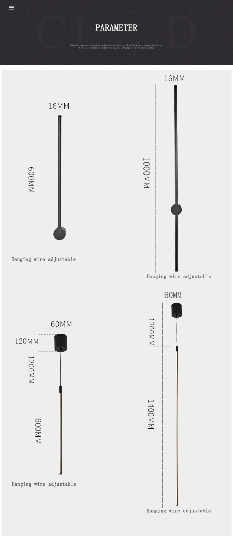 Характеристикиlong hanging wall lamp