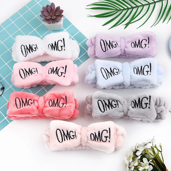Аксессуары для волос, повязка на голову с надписью OMG, для женщин, коралловый флис, мягкий бант, для девушек, для мытья лица, повязка для волос, повязка для волос, головной убор