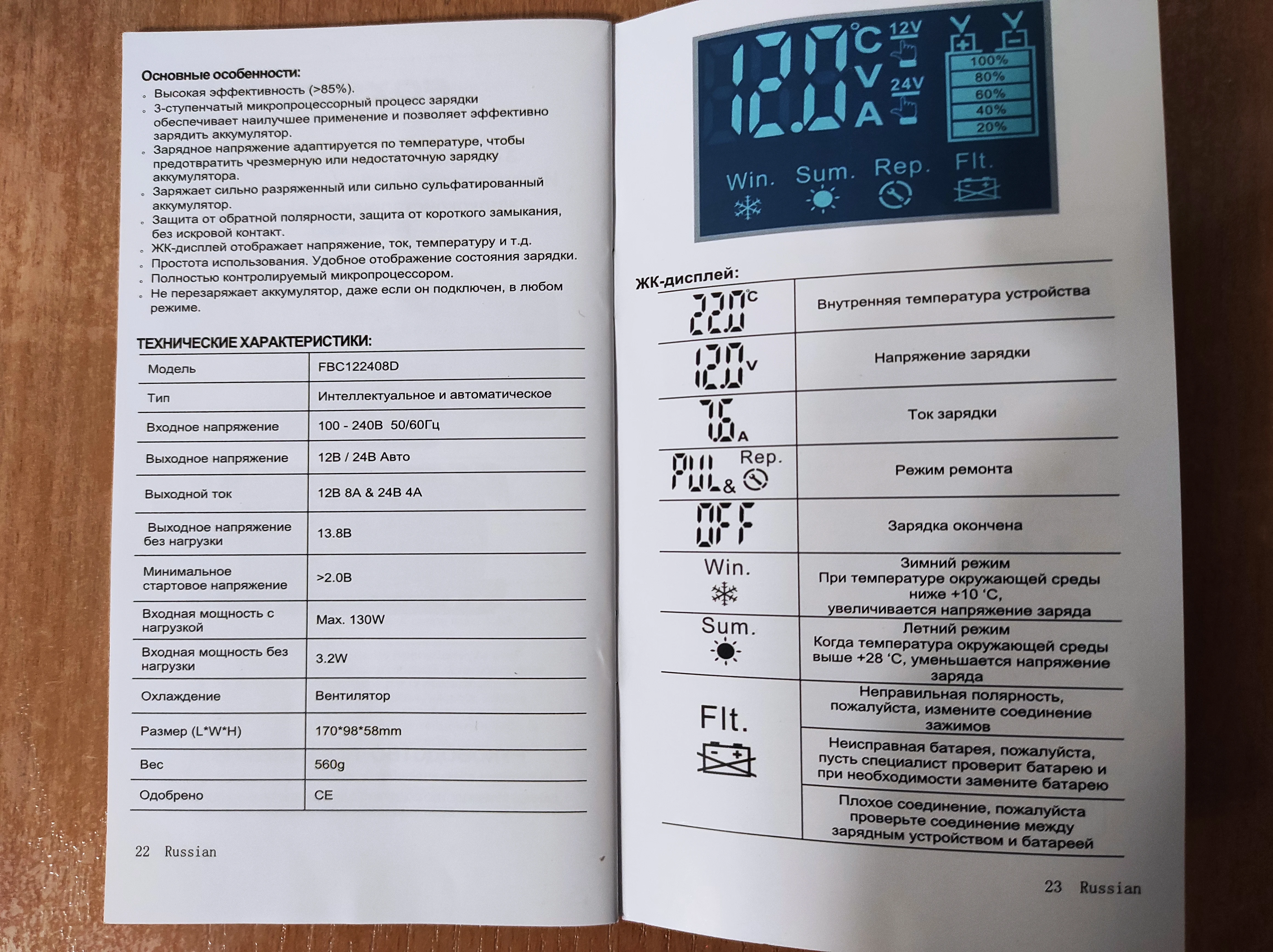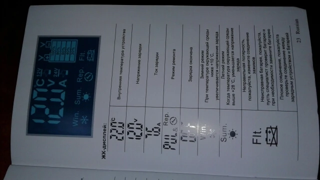 Посылку получил перед новым годом и прежде чем оставить отзыв, решил устройство протестировать. Внешне устройство целое, без механических повреждений. Работает как то не корректно. Подключаю к разряженному АКБ (проверял с помощью нескольких мультиметров 10,6 ), на экране з/у надпись «OFF». и так на всех режимах. После нескольких откл/вкл з/у от розетки и снятия клемм с АКБ, з/у начинает работать на всех режимах. Спустя несколько часов работы на экране з/у появляется надпись «OFF», и так на всех режимах, устройство перестает работать, вентилятор охлаждения не вращается. Мультиметр показывает, что АКБ разряжен. Установил акб на авто, авто не заводится! На других АКБ з/у не проверял, как проверю отпишусь. Возможно товар пришел с дефектом... Кто, что может посоветовать??? Кстати, с другого (чужого) акб, авто заводится нормально и работает в штатном режиме!