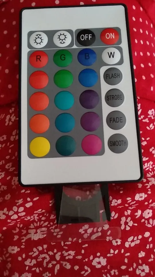 Не обращайте внимания на отзывы, чтобы увидеть, что это было просто синий, зеленый и красный, потому что, как и контроль, предполагал, что все цвета доступны. Но цена хорошая. Примечание: на изображении синий свет, но моя стена фиолетовая, и из-за этого контраста, кажется, что Светодиодная лампа фиолетовая.