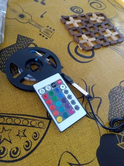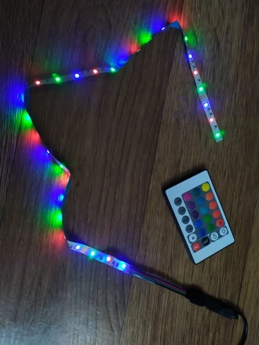 Замечательная лента. Заказываю не первый раз уже для второго телевизора. Клеится хорошо даже если поверхность волнистая и слегка ребристая. Заказывал полметра. Вполне ярко. Питание от usb телевизора. В пульте нет батарейки, так что запаситесь..