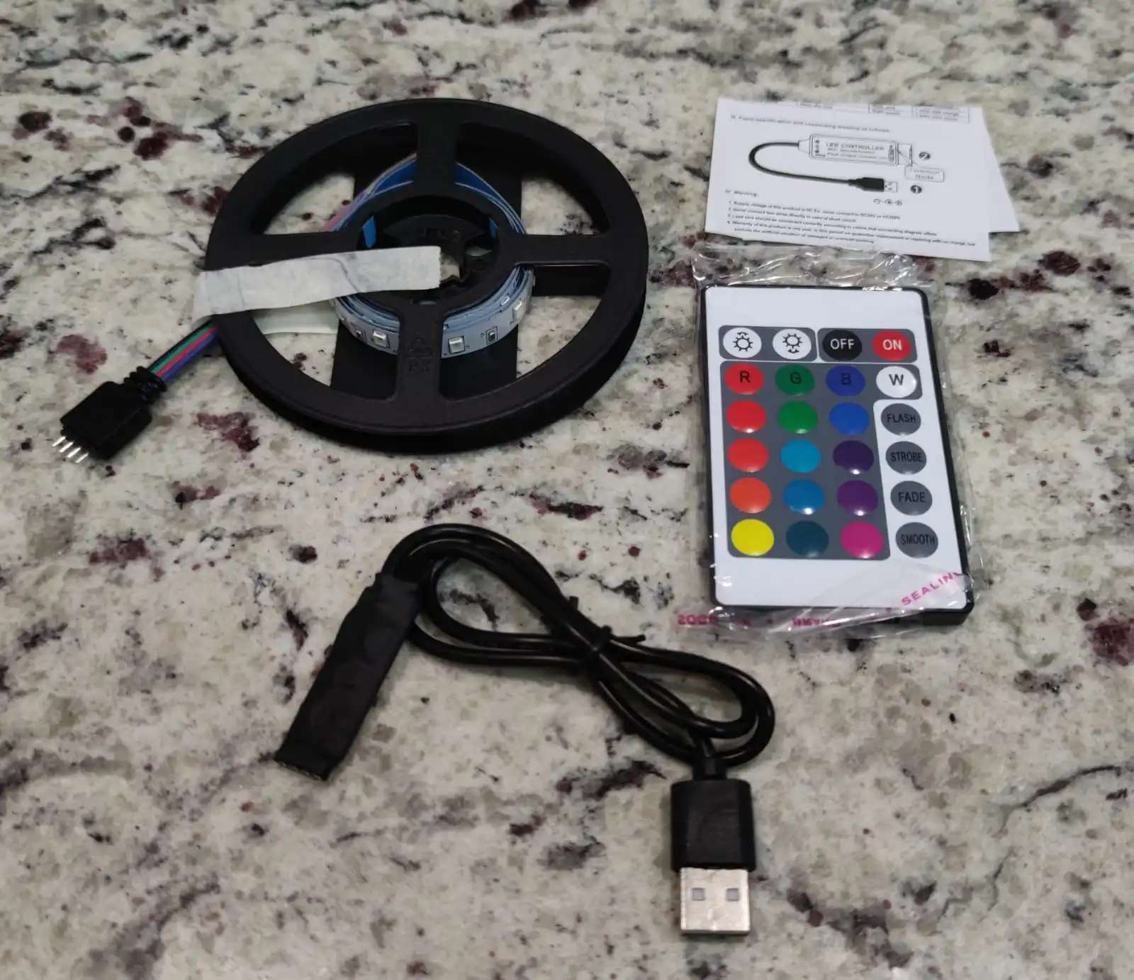 всё хорошо,прибыло быстро,всё работало. через пару дней сгорела видимо эта херня через которую всё управляется и горит один синий цвет.