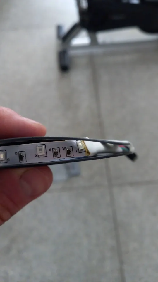 при соединении с лентой, она оказывается перекрученной , контакт и лента в противоположных плоскостях, из-за чего места стыка скручено, что вызывает проблемы с креплением.