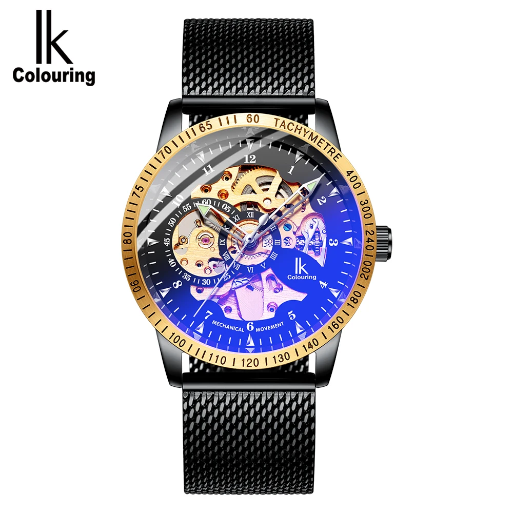 IK цветные мужские автоматические часы Скелет Механические модные п...