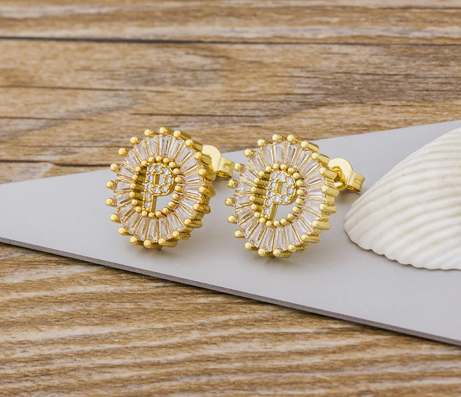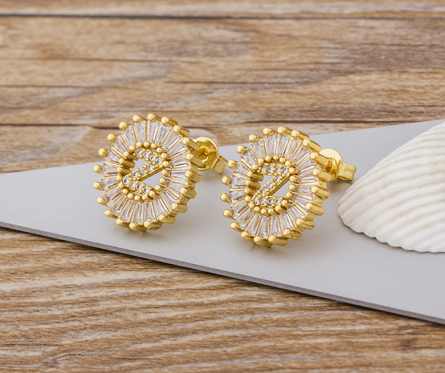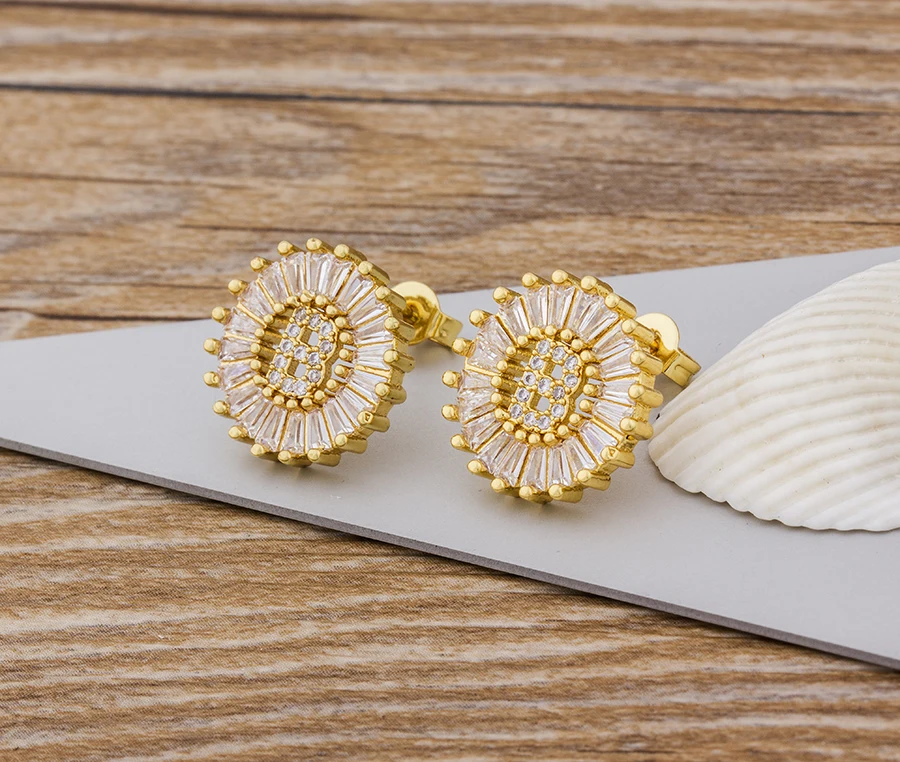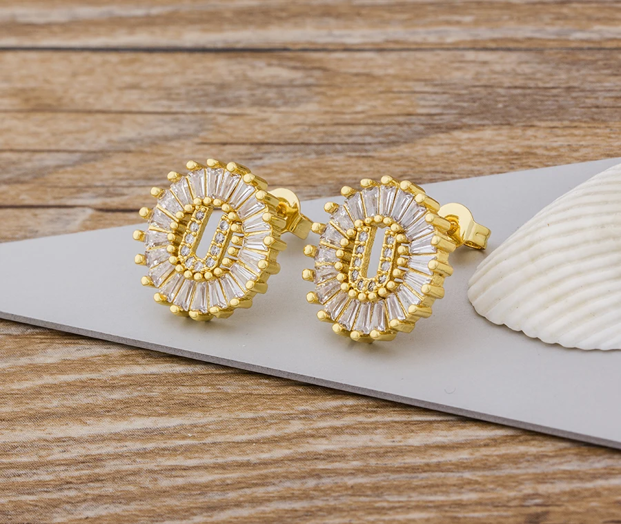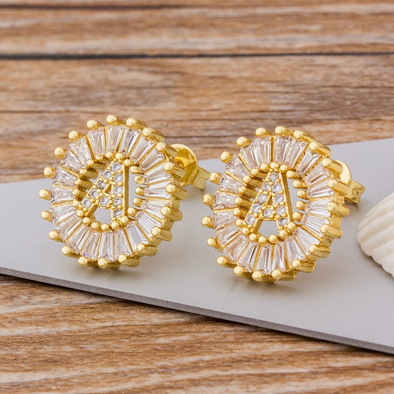 Модные серьги 26 инициальных букв персональный подарок для женщин милый Алфавит AAA кубический цирконий золотые серьги-гвоздики ювелирные изделия