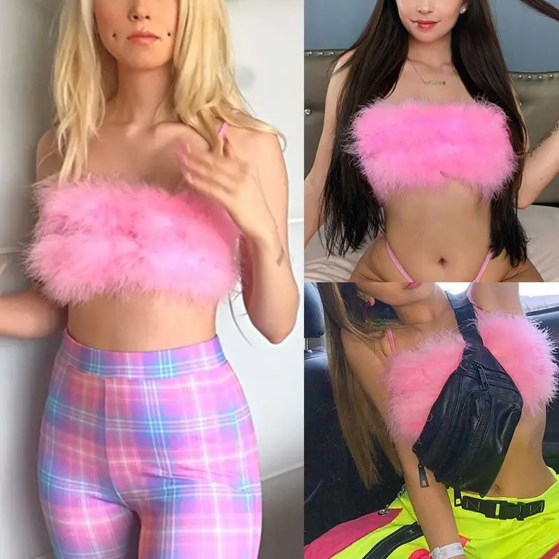 Женский топ на тонких бретельках, короткий топ без рукавов, однотонный топ мини, мягкий плюшевый бюстгальтер, Клубная одежда для вечерние
