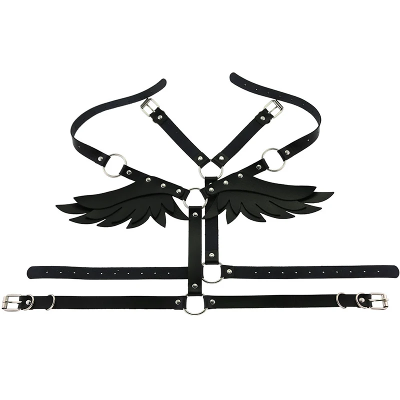 Сексуальная кожаная портупея с крыльями ангела, бюстгальтер, пояс, нижнее белье, фетиш, черные сексуальные топы, клетчатый Бралетт, панк, гот, танцевальное белье