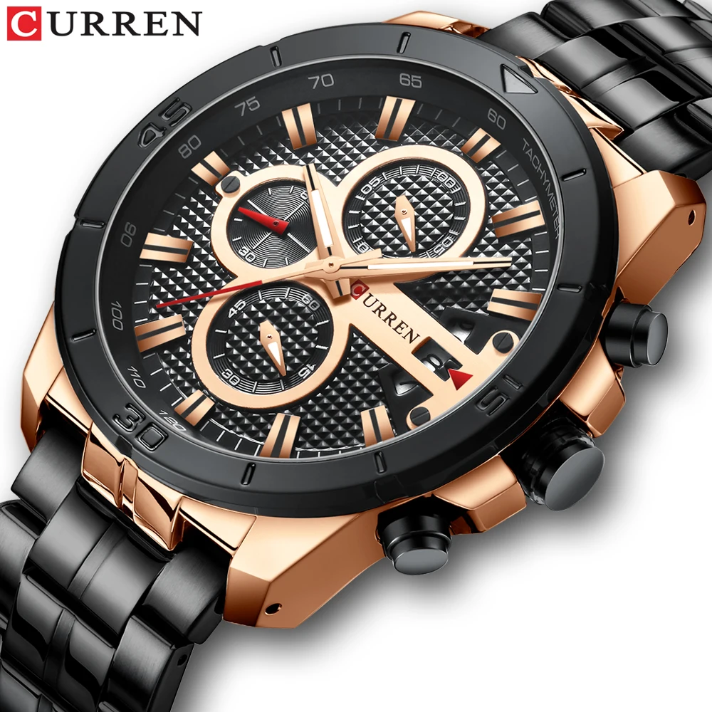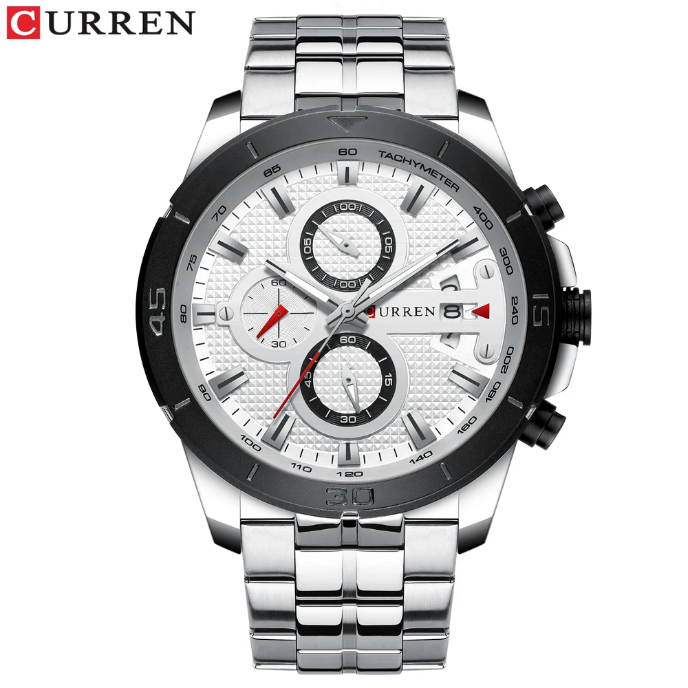 CURREN Роскошные Брендовые спортивные часы из нержавеющей стали, мужские новые наручные часы с хронографом, модные повседневные кварцевые часы с датой, мужские часы