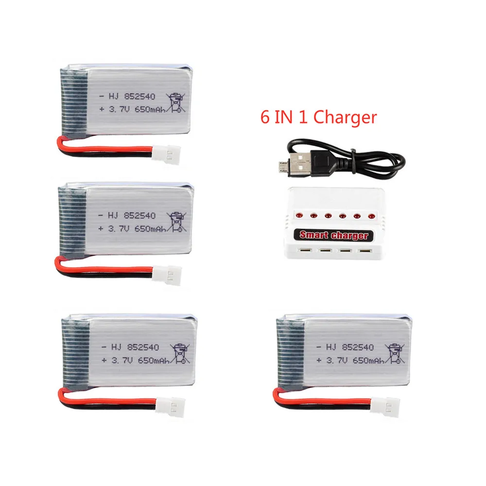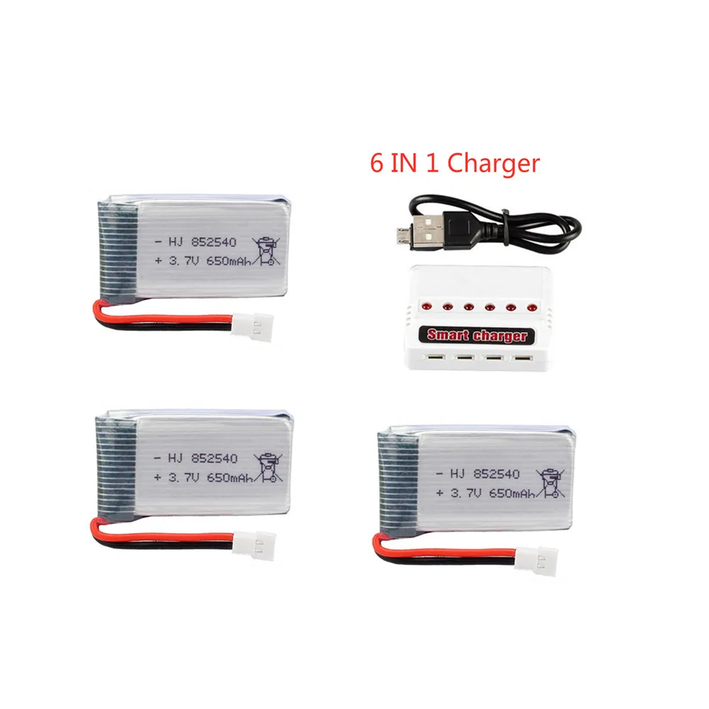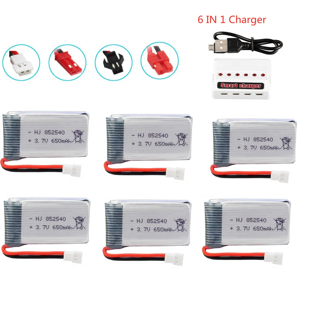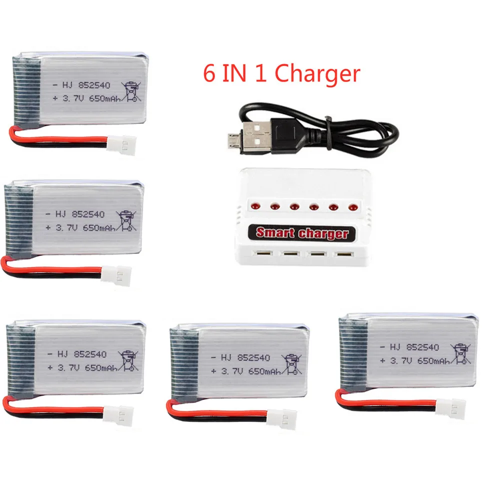 Аккумулятор 3,7 В 650 мА ч + 3,7 В USB зарядное устройство для SYMA X5 X5C, 852540, X5SW, H5C, 3,7 В, Липо-Дрон с перезаряжаемым аккумулятором, 1 шт. в 6 шт.