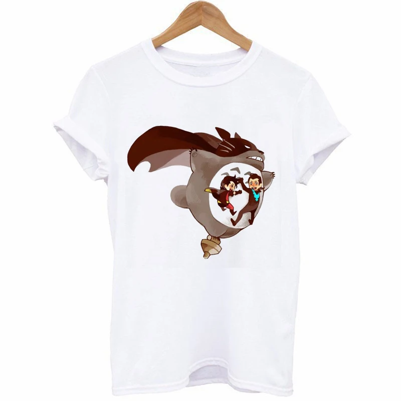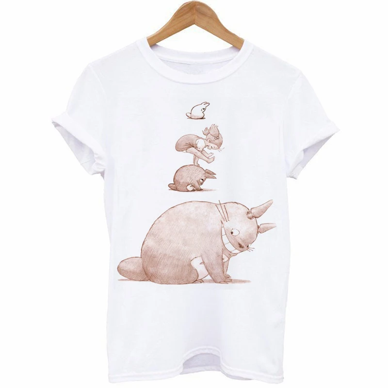 Футболка женская с 3D принтом Тоторо, Модный Белый Топ в стиле Харадзюку, Забавный топ с коротким рукавом, лето 2021