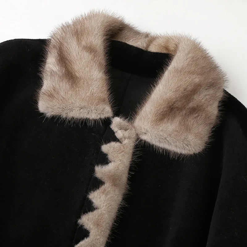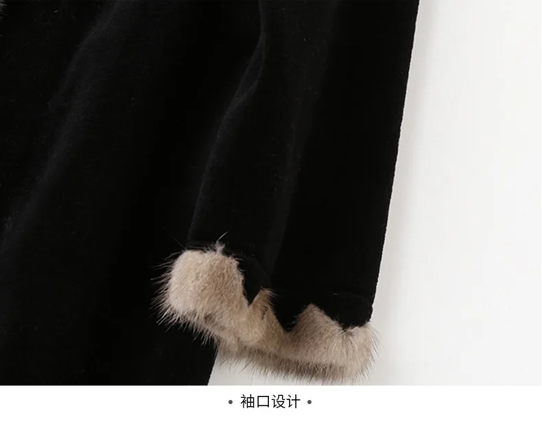 Пальто женское с норковым воротником, роскошное длинное Свободное пальто из овечьей шерсти, офисное шерстяное пальто, верхняя одежда черного цвета, зима 2019