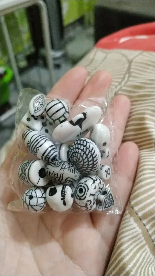 Купила не знаю зачем. Бусины как на фото продавца. В живую выглядят как пластик. Часть подвески. Количество совпадает,но выглядит скудным.