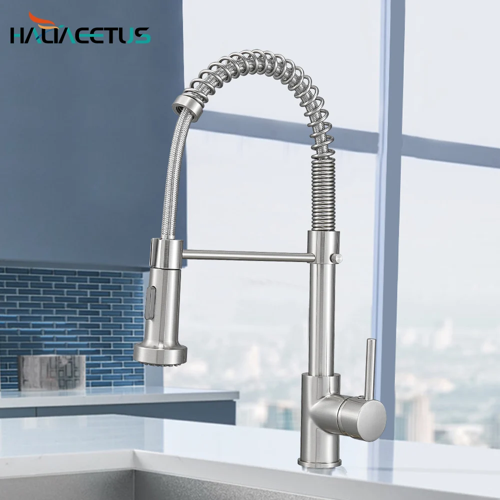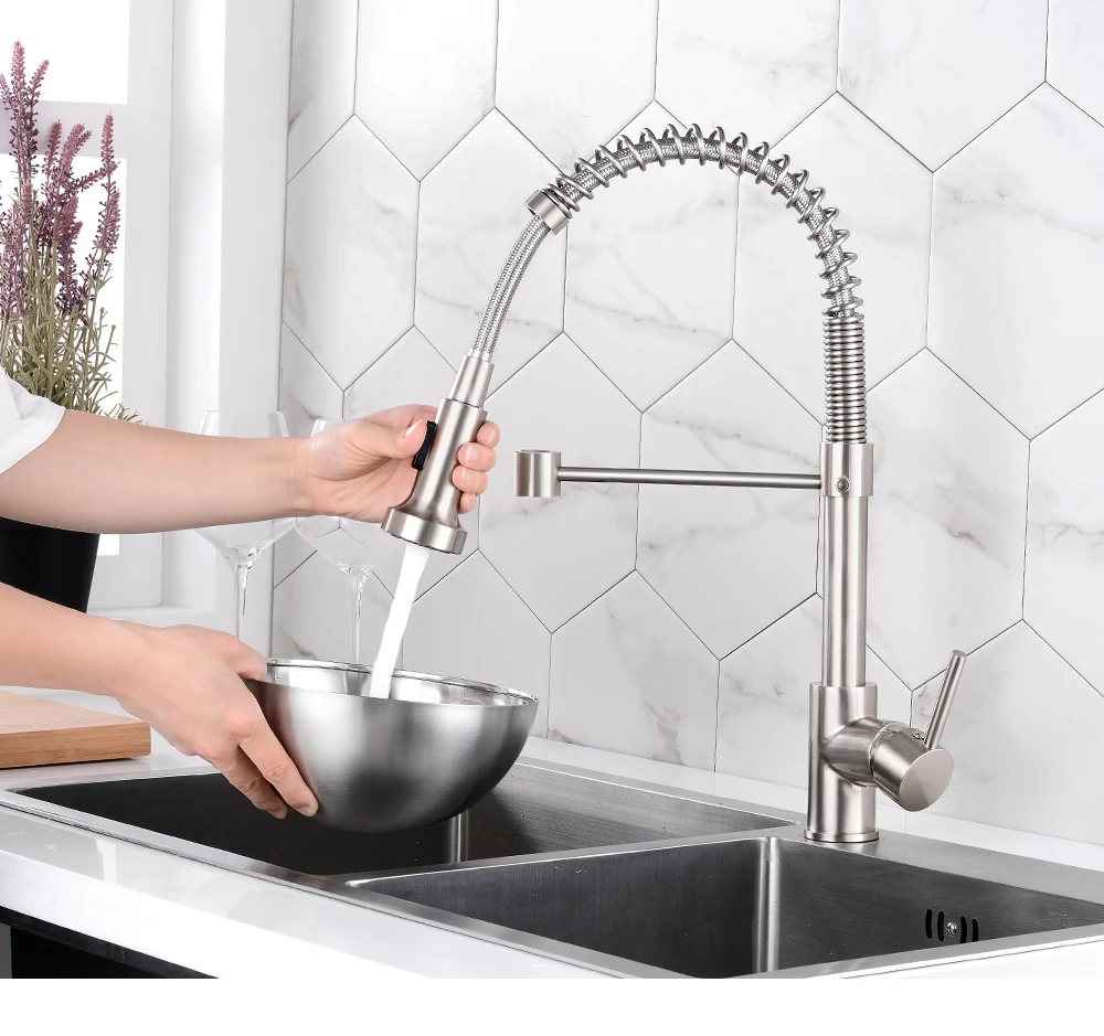 Пружинные смесители для кухни мультипликатора, выдвижной хромированный кран для горячей и холодной воды, латунный кран для кухни