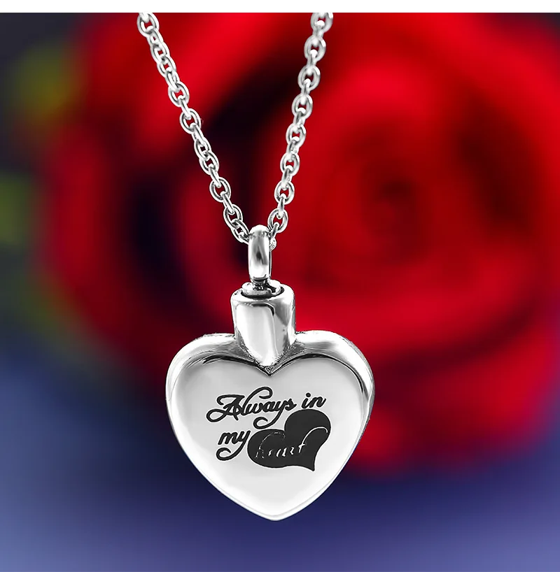 Ожерелье для праха с надписью Always In My урна в виде сердца на память в металлическом корпусе, подвеска в виде вазы, человеческого пепла