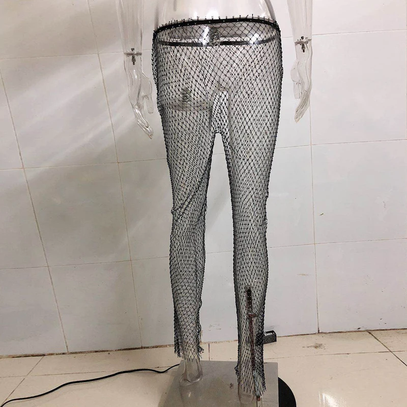 Новый Прозрачный кристаллический алмаз блестящие женские брюки летние сексуальные открытые эластичные сетчатые брюки прозрачные пляжные брюки