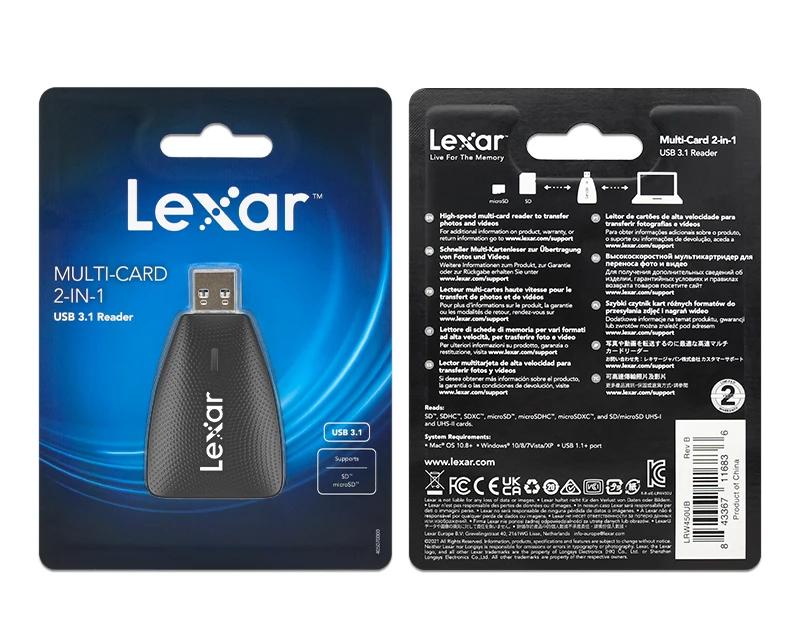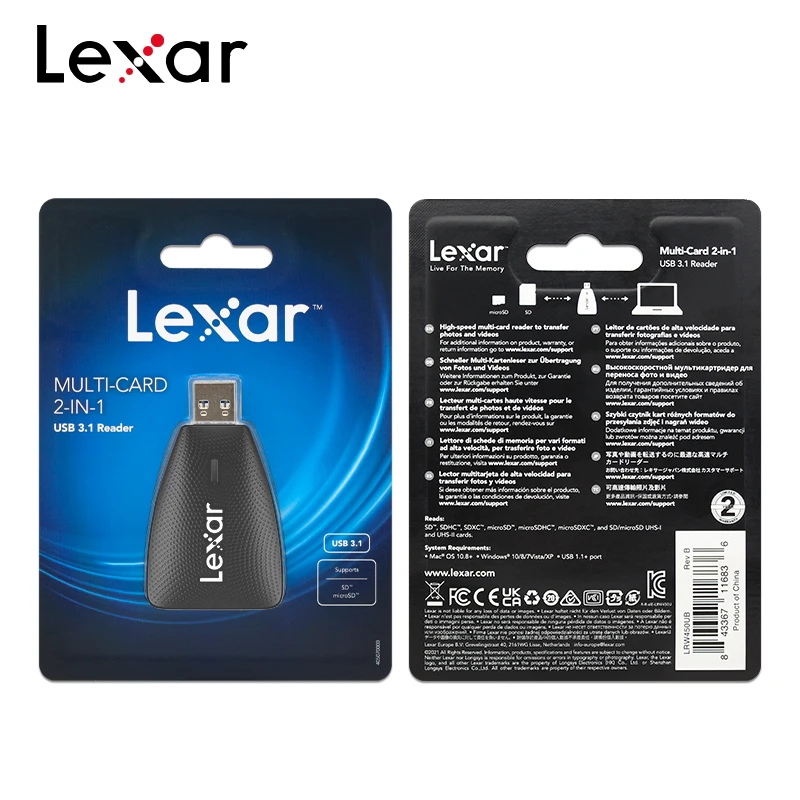 100% Оригинальный USB 3,1 кардридер Lexar 2 в 1, высокоскоростной многофункциональный считыватель для SD-карт SDHC SDXC, TF-карт
