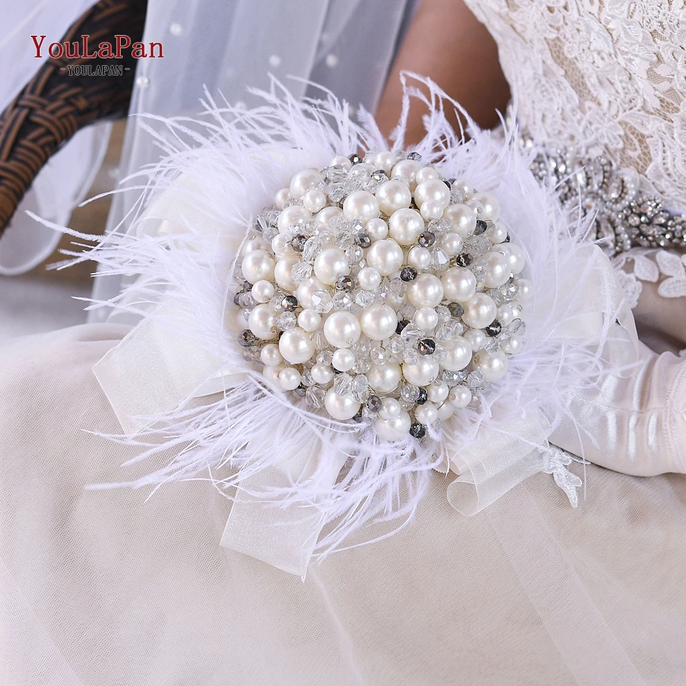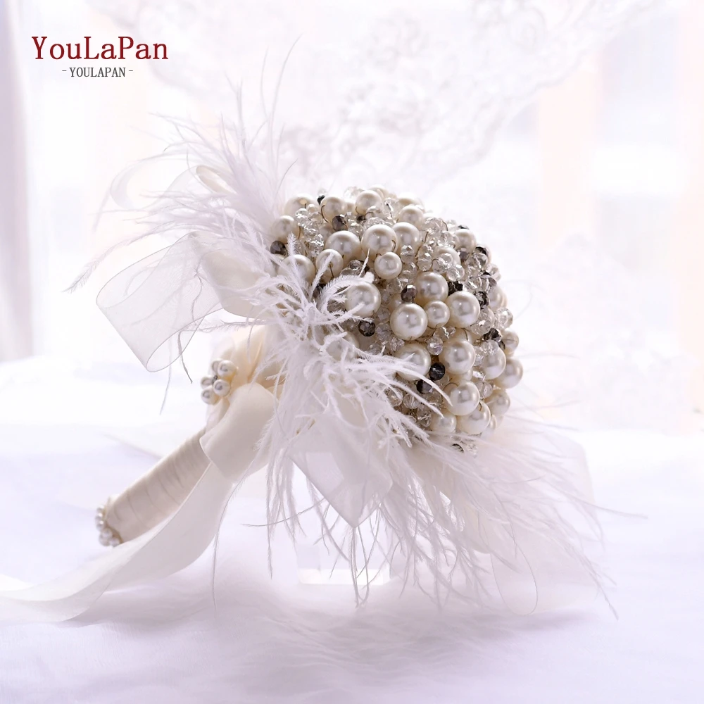 YouLaPan HF03 ручной работы жемчужные перья цвета слоновой кости Свадебный букет невесты бижутерия со стразами жемчужный мини-букет