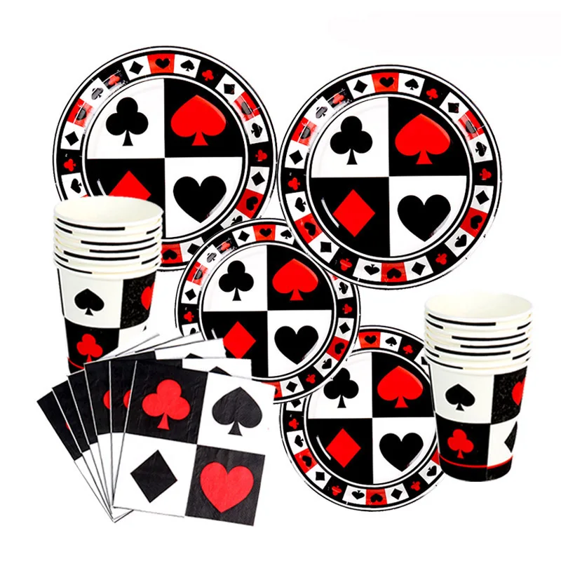 Тематическое украшение казино, игральные карты, одноразовая посуда,...