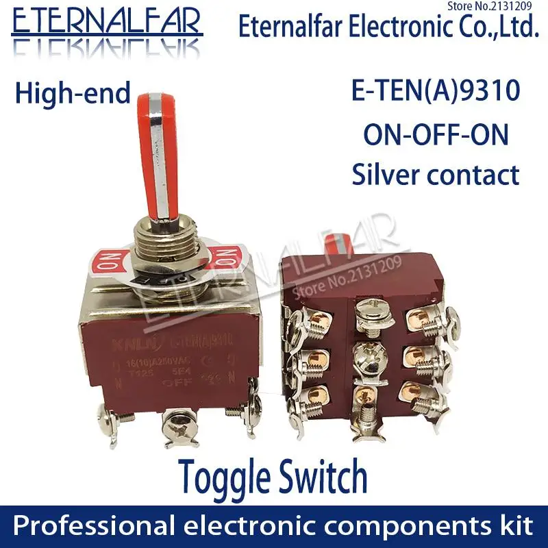 12 мм E-TEN(A)9310 Высокое качество Серебряный контакт 3PDT 16A 250В AC вкл.-ВКЛ. 9 ручка-булавка сброс Рокер тумблер скользящий переключатель