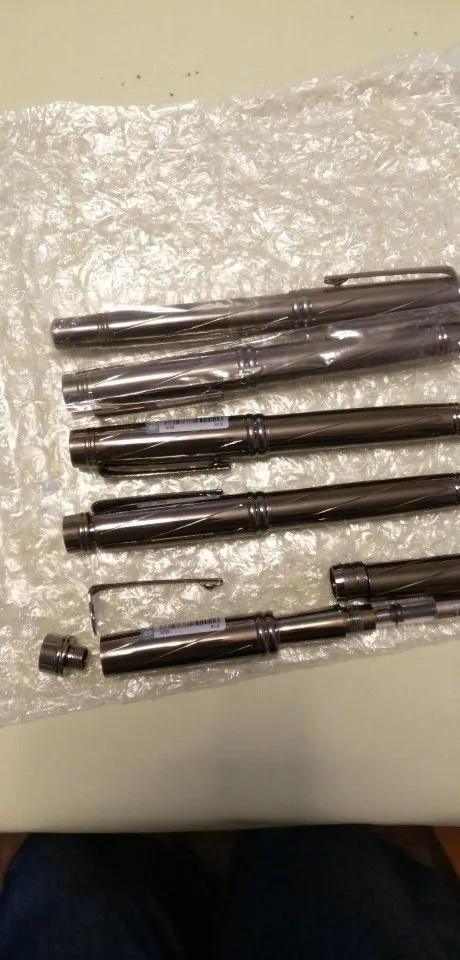 Ручка Хорошо записывает. Это большой размер. Наконечник и подача не были выровнены, когда ручка прибыла, и я должен был вручную их реконструировать перед первым использованием. Ручка имеет 2-3 кристалла в металле (косметически не нравится, но не влияет на функцию ручек). Все еще отличное соотношение цены и качества.