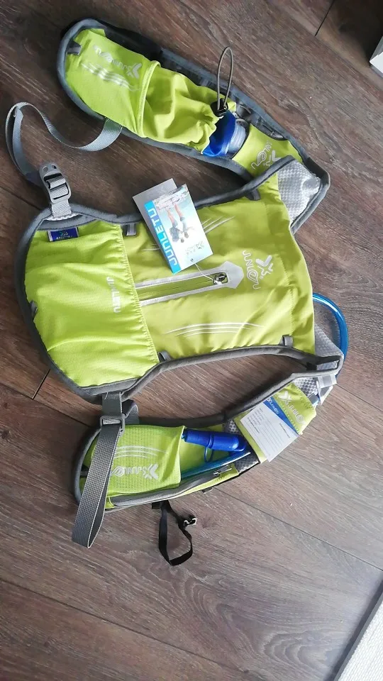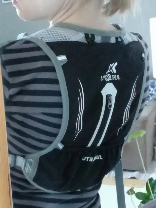 Точно такой же, как на фото. Отличное сцепление и становится очень легким. В нем достаточно карманов для хранения еды и напитков Раздельная задняя часть обеспечивает полую вставку в мешок для воды.
