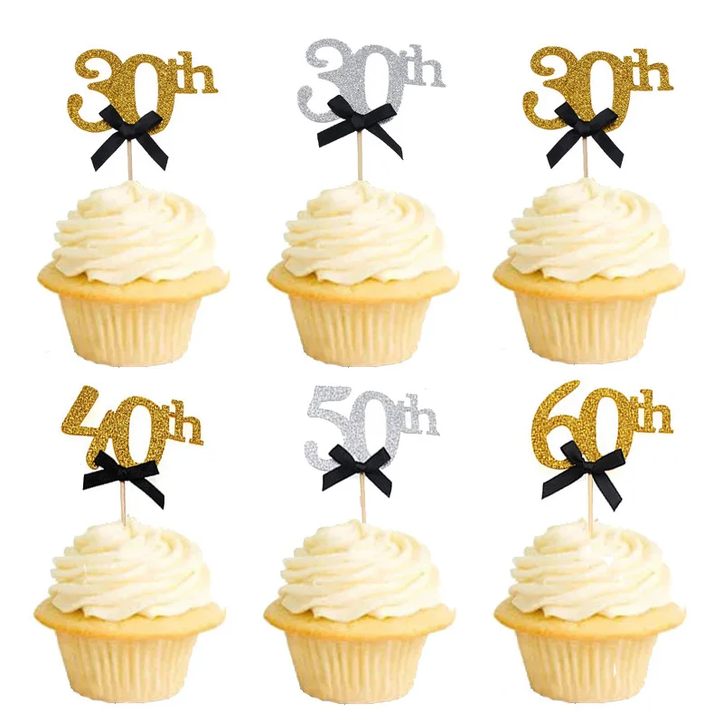 30, 40, 50, 60 лет, топперы для кексов, день рождения, юбилей, взрослые, 30, 40, 50, 60, украшения для торта на день рождения, принадлежности