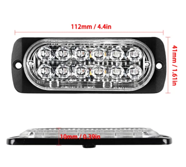 1 шт. DC 12V красный 4/6/12 светодиодный Предупреждение светильник решетка автомобиля без мигающий светильник грузовик Маяк опасности аварийного трафика светильник светодиодный срочно лампаПосылка:1 * светодиодный светильник1 * защитная накладка2 * винтыОсобенности:* 100% новый и высокое качество* Изготовлен из высококачественного материала, прочный и практичный в использовании* Ультра тонкий, супер яркий, поверхностное крепление* Питание от 4 светодиодов высокой интенсивности с оптическими линзами* Защита от столкновений, Пыленепроницаемость, защита от брызг* Низкое энергопотребление, быстрое мгновенное время запуска* Отсутствие загрязнения, отсутствие шума, отсутствие электронных помех, высокая эффективность* Быстрая конструкция рассеивания тепла* Эффективное расстояние освещения намного больше, чем обычные лампы* Простота установки и износостойкостьХарактеристики:* Напряжение: 12 В постоянного тока* Ток: 333mA* Мощность: 12 Вт (3 Вт/светодиодный)* Количество светодиодов: 4 светодиода/6 светодиодов/12 светодиодов* Материал корпуса: пластик* Цвет: черный корпус + прозрачные линзы (как показано на рисунке)* Светодиодный Светильник Цвет: красный (как показано на фотографии)* Проводное Соединение: черный для отрицательного и красного для положительногоПримечания:Настоящий цвет товара может незначительно отличаться от изображений на веб-сайте из-за таких факторов, как яркость монитора, яркость освещения и т. д.
