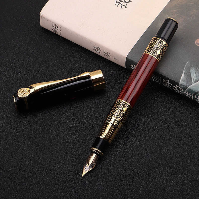 Высококачественная классическая перьевая ручка с отделкой под древесину, роскошная Высококачественная деловая ручка, металлическая перьевая ручка для подписи, письменные принадлежности