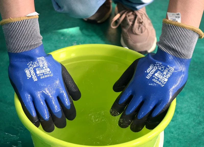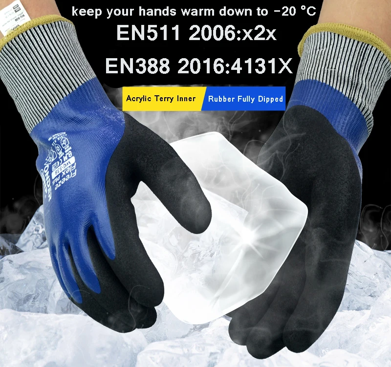 Новейшая инновация в области защиты от холодостойких рук от WG-538, WG-538 «Freeze Flex Plus»-это полностью устойчивая к холоду перчатка с двойным покрытием (уровень холодостойкости контакта 2: держите руки в тепле до-30 °C/-22 °F). Используя специально разработанное инновационное Нитриловое покрытие, WG-538 «Freeze Flex Plus» остается гибким и удобным для использования в условиях ниже мороза, Обеспечивая максимальную стойкость к истиранию. WG-538 «Freeze Flex Plus» является сертифицированным «приложением для контакта с пищевыми продуктами» (CE1935/2004).