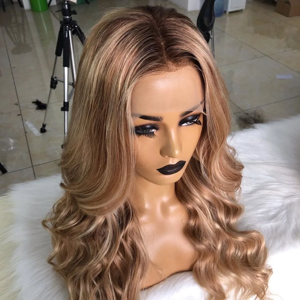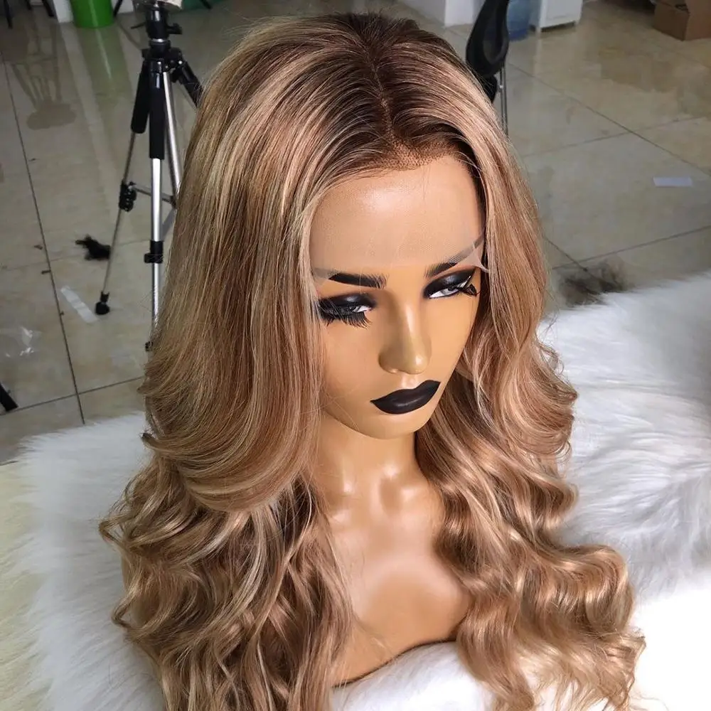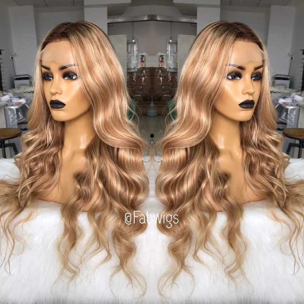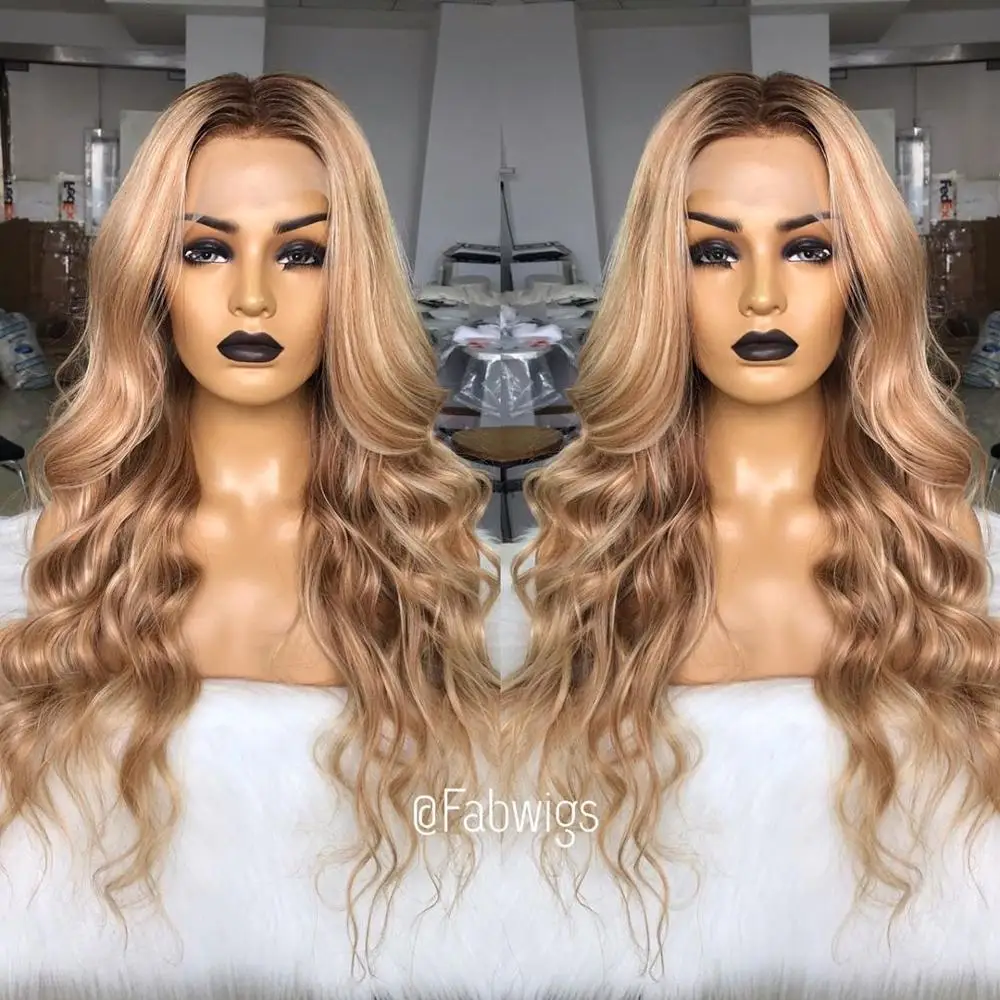 Fabwigs хайлайтер Lemi цвет T427613 кружевные передние парики предварительно выщипанные волнистые парики европейские светлые парики Омбре 13x6