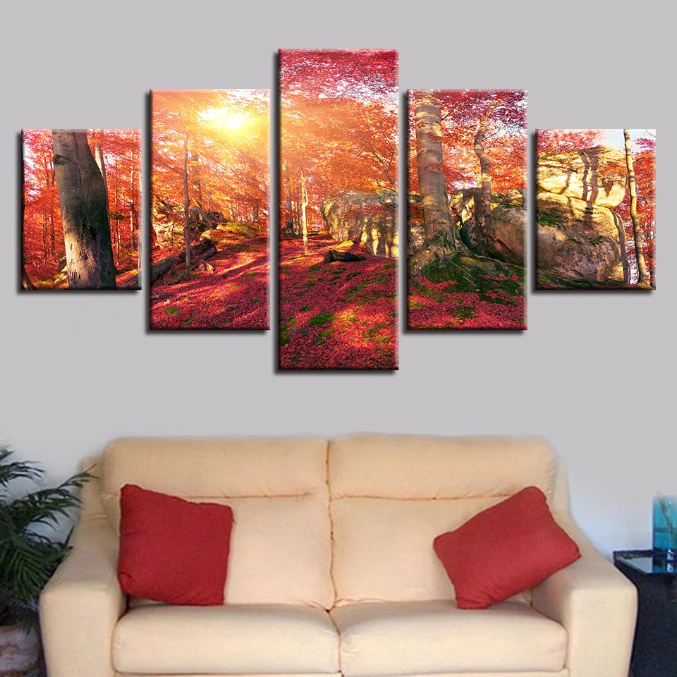 Настенные картины холст картины 5 шт. осенний лес опавших картины л...