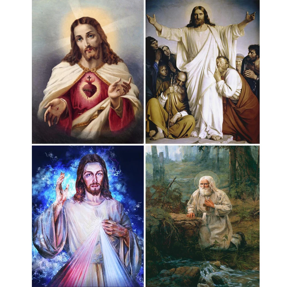 Алмазная мозаика с Иисусом, картина из квадратныхкруглых страз 5D, серофим Сарова, вышивка, Рождественское украшение для дома FG1609