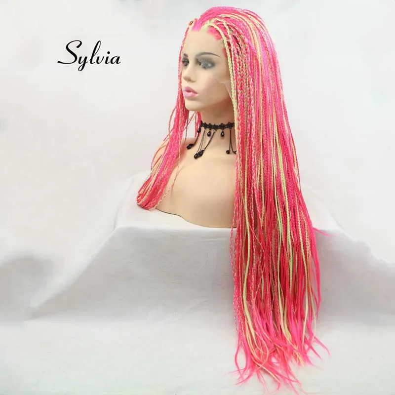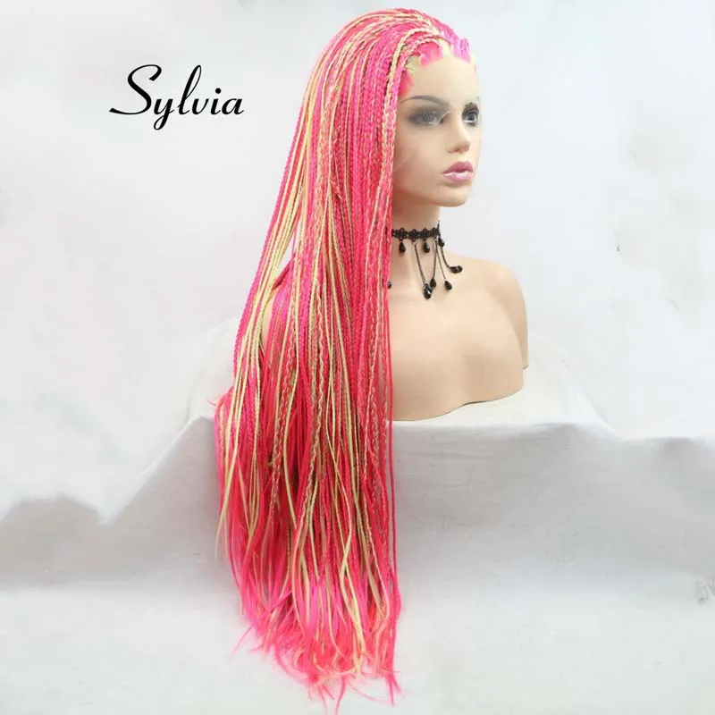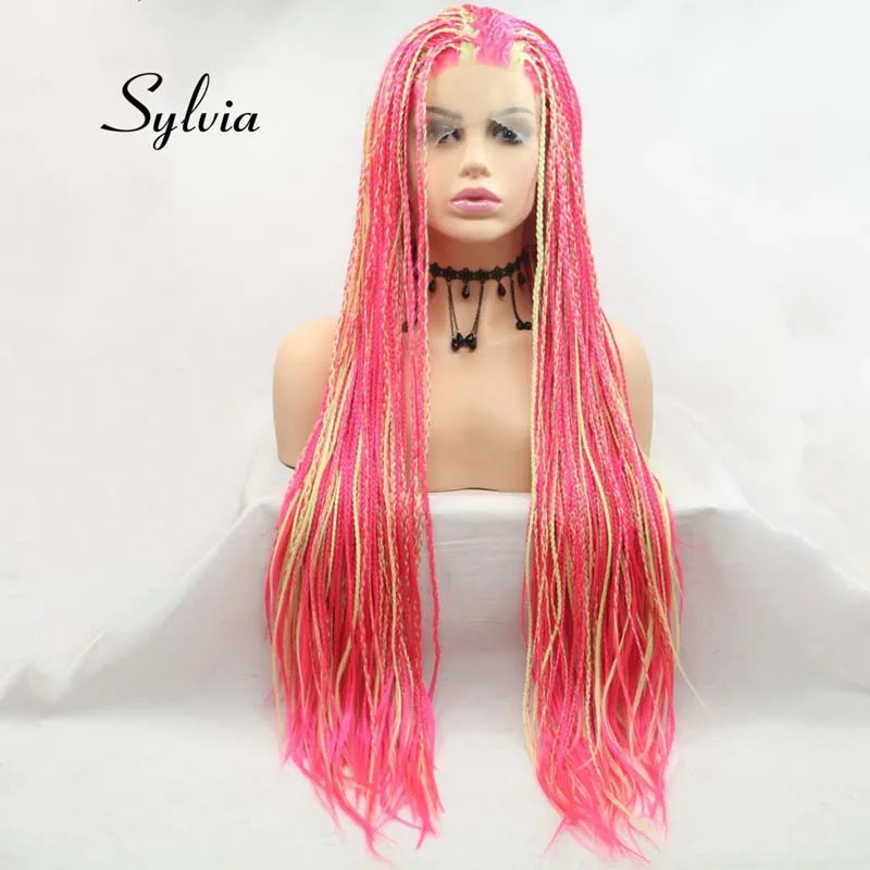 Sylvia желтыйрозовый смешанный цвет, Длинные Синтетические кружевные передние парики для женщин, термостойкие парики для волос