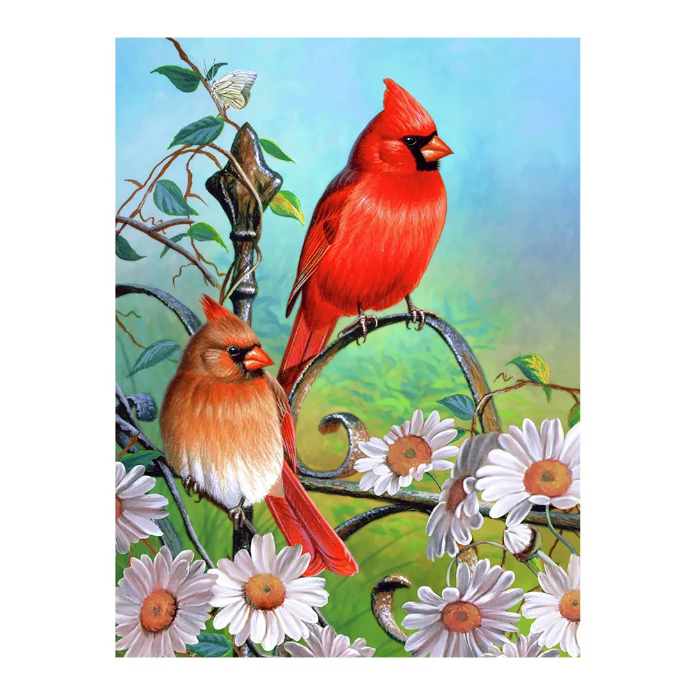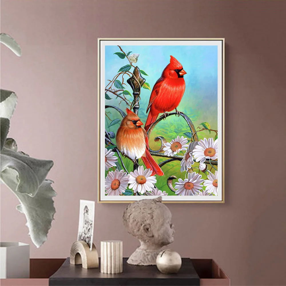 5D DIY Cardinal North Flower Алмазная с изображением птицы живопись животных Цветочная Круглая Мозаика вышивка крестиком декоративная