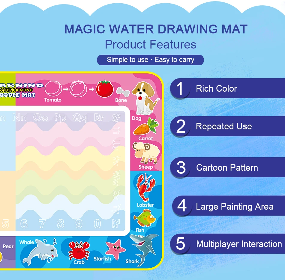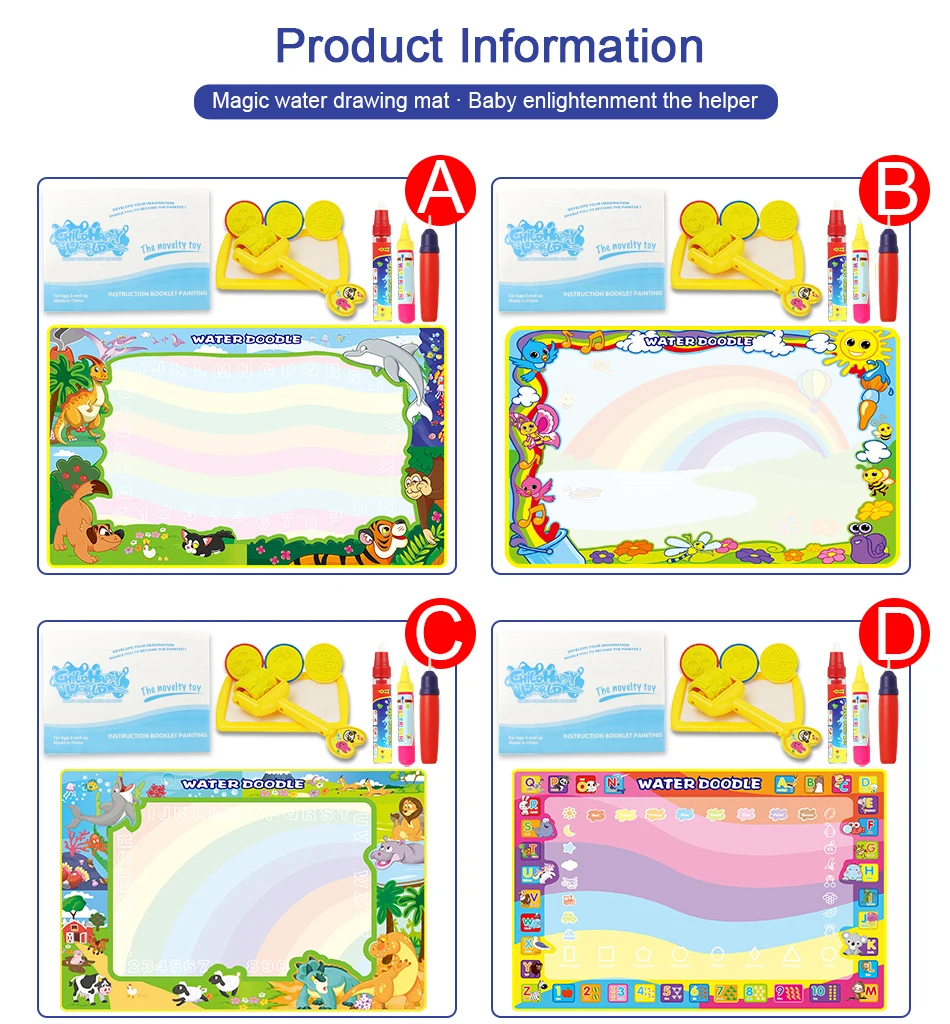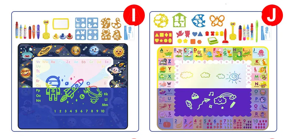A,B,C,D,E,F,G,H Тип: коврик для рисования водой (не включая светящаяся ручка);I,J Тип: светящийся функциональный коврик для рисования водой (включая светящаяся ручка);