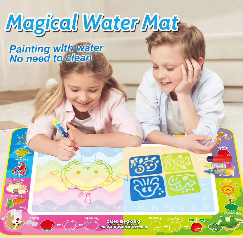 1. Окрашенные вещи естественным образом исчезнут, могут быть повторно использованы, просты в использовании и переноске.2. Волшебная кисть для воды, чистая вода для рисования. Отборный высококачественный хлопок изготовлен из ручки, высокой плотности, хорошего поглощения воды, гладкой живописи.3. Материал безопасности. Чернила для безопасности и защиты окружающей среды, чернила для воды, нетоксичные и экологически чистые, зеленые и здоровые.4. Большой размер коврик для рисования воды на выбор, подходит для детей 2-3, чтобы рисовать вместе.
